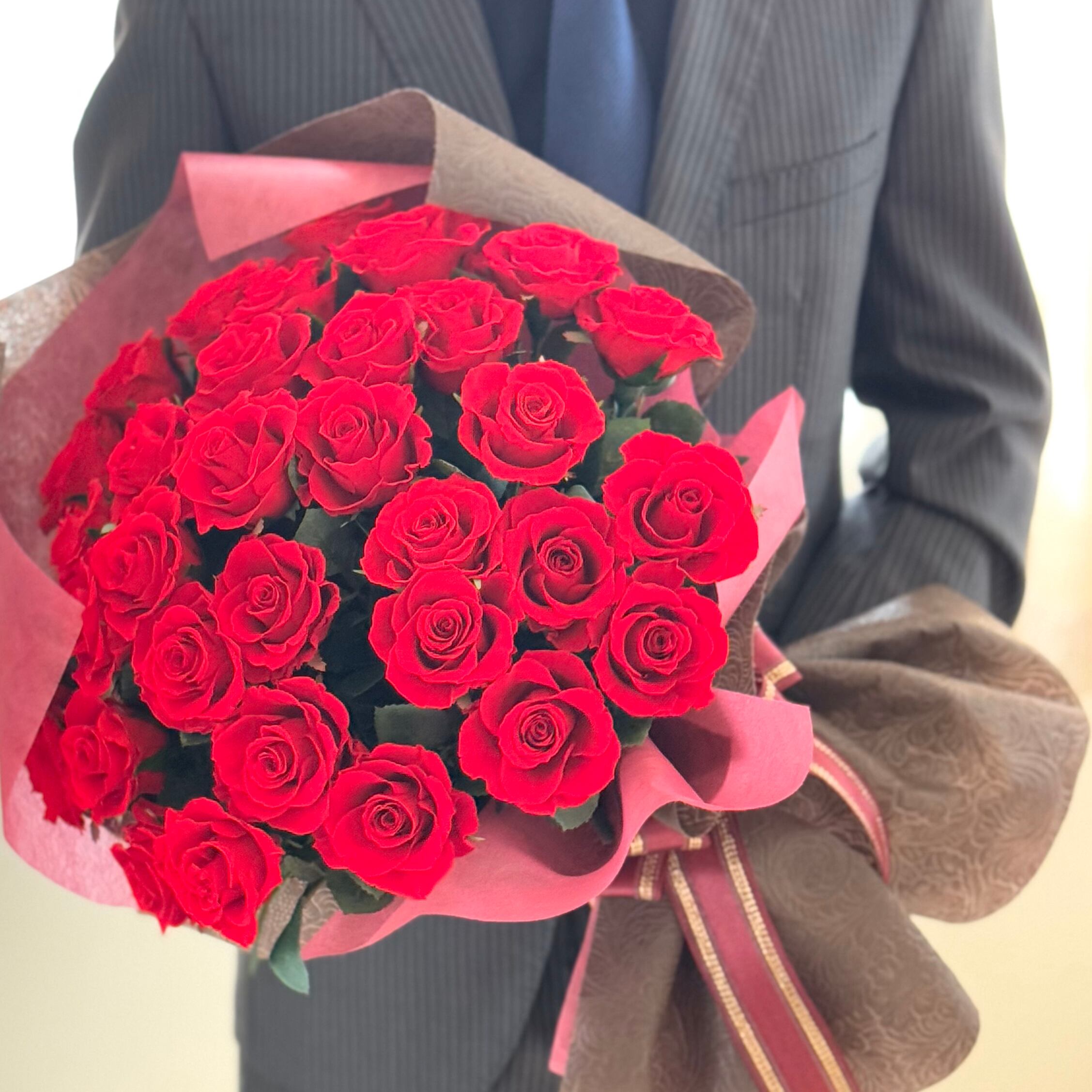 プリザーブドフラワーの花束 5本以上数量自由設定 大切な方への特別な贈り物として、プリザーブドフラワーの花束をお届けいたします! 数量は5本以上からお選びいただけるので、用途やお好みに合わせて自由にアレンジ可能です。 1輪 1,200円(税別)で 5輪以上から承ります。 5本以上から、必要本数をカートに入れてください。 ・24歳の誕生祝のため 24本 ・ダズンローズセレモニーで使用するため12本 等 直射日光と過度の湿気を避けていただければ1年~3年以上 生花の見栄えを楽しむことができます。 茎より下の部分は質感の高いアーティフィシャルですので気を遣わずに扱えます。 また内部にワイヤーが入っておりますので自由な方向に曲げて使うことも可能です。 【バラの花束は贈る本数によって意味合いに違いがあります】 プロポーズや結婚記念日に贈る花束では 「最愛」という意味の11本の花束 または、19世紀前半のヨーロッパ発祥とされる 12本のダズンローズの花束もおすすめです 1ダース(1ダズン)=12本 12本のバラにはそれぞれ意味があり「感謝・誠実・幸福・信頼・希望・愛情・情熱・真実・尊敬・栄光・努力・永遠」という結婚生活に大切な12個の誓いが込められていて、最近では、結婚式の披露宴などで、ダズンローズセレモニーの演出など、広く知られています。 11本 「最愛」 24本 「いつもあなたを想っています」 33本 「生まれ変わってもあなたを愛します」 40本 「真実の愛」 【ご用途に合わせて】 ★記念日やお祝い 結婚記念日、誕生日、お祝い、御祝などのシーンで特別感を演出。 ★ビジネスシーンでも活躍 開店祝い、昇進祝い、退職祝いなど、感謝の気持ちを込めて贈ることができる商品です。 ★ご長寿のお祝いにも 還暦祝い、古希祝い、喜寿、米寿など、長寿を祝うプレゼントとしても最適です。 <還暦(赤)古希・喜寿(紫)傘寿・米寿(黄・金)卒寿(紫・白)白寿(白)百寿(白・桃)> ★季節のイベントやお返しにも 母の日、父の日、クリスマス、バレンタインデー、発表会など、様々なイベントに最適なギフトです。 ◆素材:プリザーブドフラワー 葉茎部分アーティフィシャル ◆1輪のサイズ(目安):直径約4.5~6cm *長さ約30cm ◆ギフトラッピング、メッセージカード無料 ~記念品に最適なアレンジギフト~ 結婚記念日 金婚式 銀婚式 ダイヤモンド婚式 記念日 周年 周年記念日 開院祝い 開 業祝い 移転お祝い 就任祝い 昇進祝い 栄転祝い 定年退職 定年退職記念品 退職 退職 祝い 公演 発表会向け 装飾 展示会 ~ご結婚からご出産のお祝い、ご新築祝い、お見舞いにも~ 結婚 結婚式 結婚祝い 内祝 内祝い 出産祝い お礼 御礼 ウェディングギフト ブライダルギフト 両親贈呈ギフト 引き出物 結婚引出物 結婚内祝い 出産内祝 い お返し 命名 内祝 新築祝い 引越し祝い 内祝い お餞別 男の子誕生 女の子誕生 お見舞い 全快祝い 快気祝い 退院祝い ~さまざまなご年代のご長寿の御祝にもぴったり~ 還暦 還暦祝い 還暦のお祝い 還暦祝い母 還暦祝い父 古希 古稀祝い 喜寿 喜寿祝い 傘寿 傘寿祝い 米寿 米寿祝い 卒寿 卒寿祝い 卒寿のお祝い 白寿 白寿祝い 百寿 百 寿祝い 紀寿祝い 長寿祝い 60歳 70歳 77歳 80歳 88歳 90歳 99歳 100歳 20代 30代 40代 50代 60代 70代 80代 90代 ~季節のイベントの贈り物に~ お歳暮 御歳暮 お年賀 御年賀 お中元 御中元 年始挨拶 母の日 父の日 早割 遅れてごめんね 話題 人気 ランキング 敬老の日 クリスマス プレゼント クリスマス X'mas バレンタインデー バレンタインデイ ホワ イトデー ホワイトデイ 初節句 七五三 入園祝い 入学祝い 卒園祝い 卒業祝い 卒業 記念品 成人式 就職祝い 就職内祝い ~お供え、お悔やみや 法事、新盆などにも~ 仏花 御供 お供え お供え物 お悔やみ 仏壇 ミニ仏壇 御仏前 御佛前 御霊前 仏事 初盆 新盆 新盆見舞い 年回忌法要 三回忌 七回忌 十三回忌 十 七回忌 二十三回忌 二十七回忌 お香典返し 香典返し 志 満中陰志 弔事 法要 法事 忌明け 四十九日 一周忌 三回忌 回忌法要 偲び草 粗供養 ~ご家族から大切なご親戚、ご友人などへ~ 両親 父母 母 父 お父さん お母さん お義理父さん お義理母さん 兄弟 姉妹 子供 おばあちゃん おじいちゃん 祖母 祖父 叔母 叔父 奥さん 彼女 旦那 さん 彼氏 先生職場 先輩 後輩 同僚 上司 部下 秘書 女性 男性