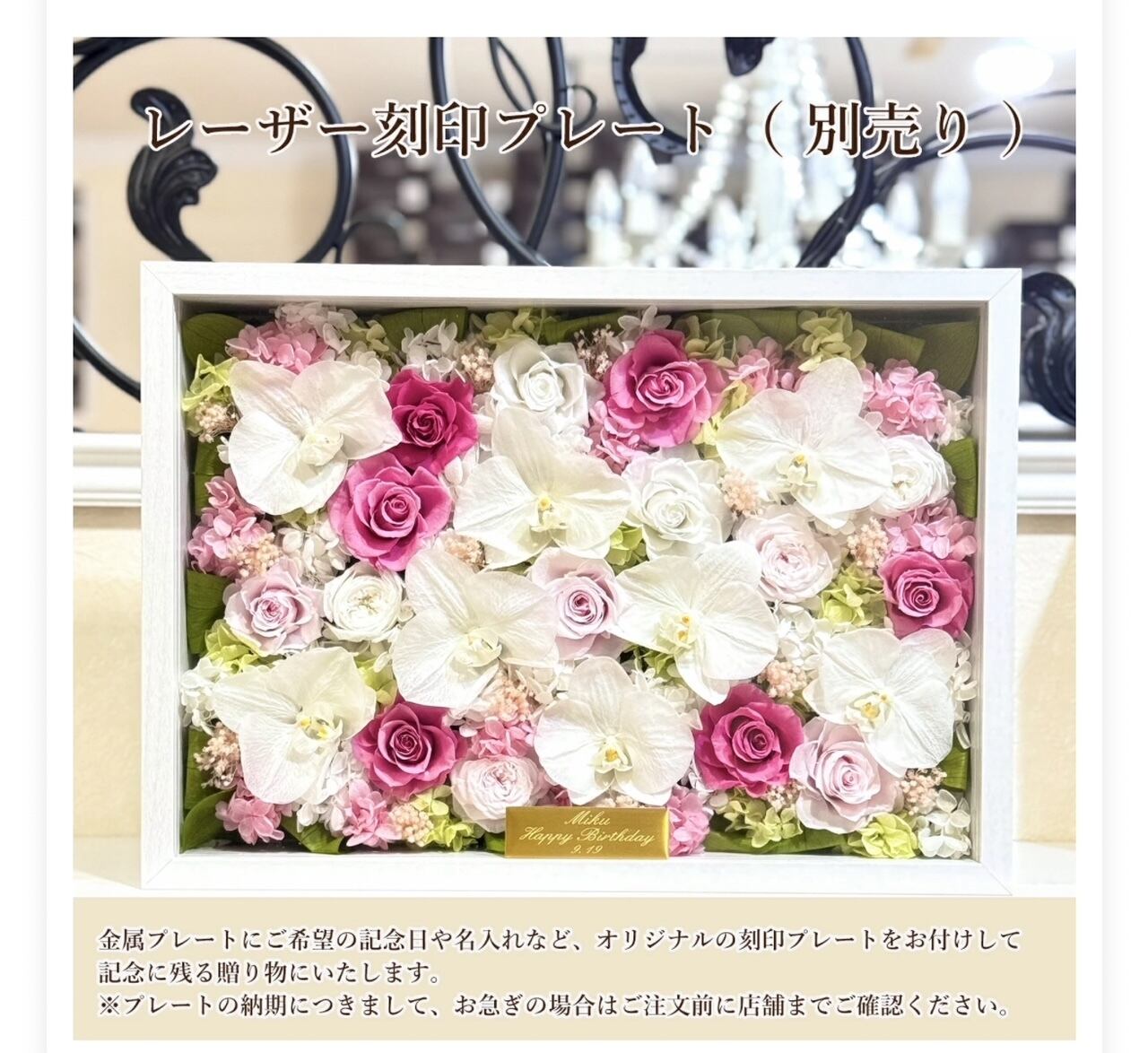 メッセージプレート(別売)をおつけすることも可能です。