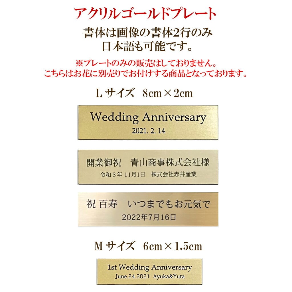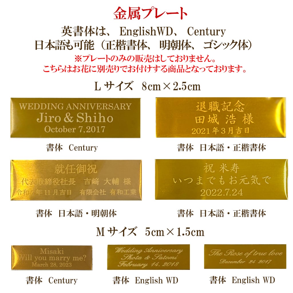 記念日やメッセージをレーザー刻印した、刻印プレート(別売り)をお付けできます。