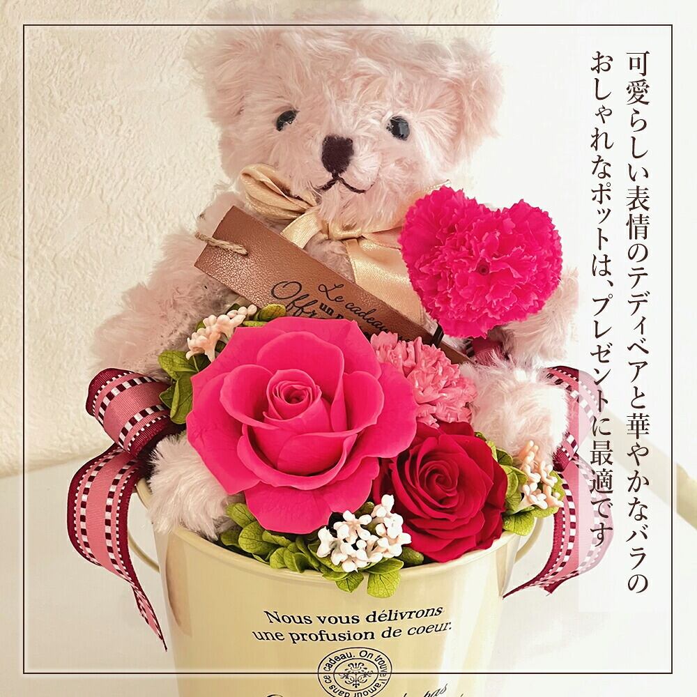 プリザーブドフラワー 母の日 プレゼント カーネーション くま クマ 母の日2026 ぬいぐるみ プリザードフラワー 誕生日 母 義母 祖母 プリザーブドフラワーアレンジ 母への誕生日プレゼント テディベア 可愛い おしゃれ かわいい 出産祝い 男の子 女の子 お祝い 還暦祝い